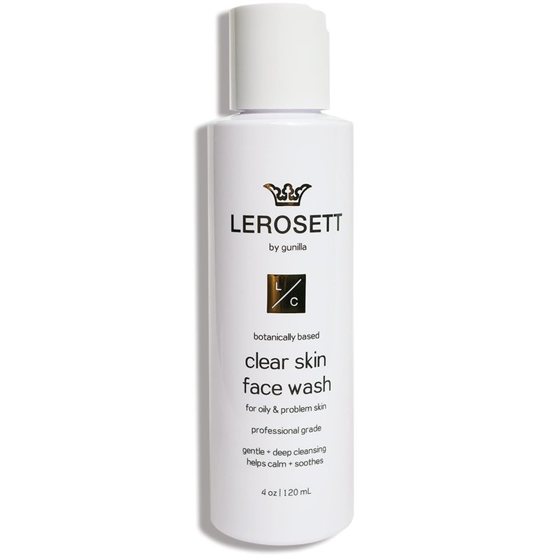 LEROSETT Face Wash for Clear Skin, Gentle Exfoliating Cleanser, Reduces Pores, Blemishes & Oily Skin, Plant-Based, 12 Botanicals, Glycolic Acid, Softens Skin, Vegan, Non-Drying 4 oz.
