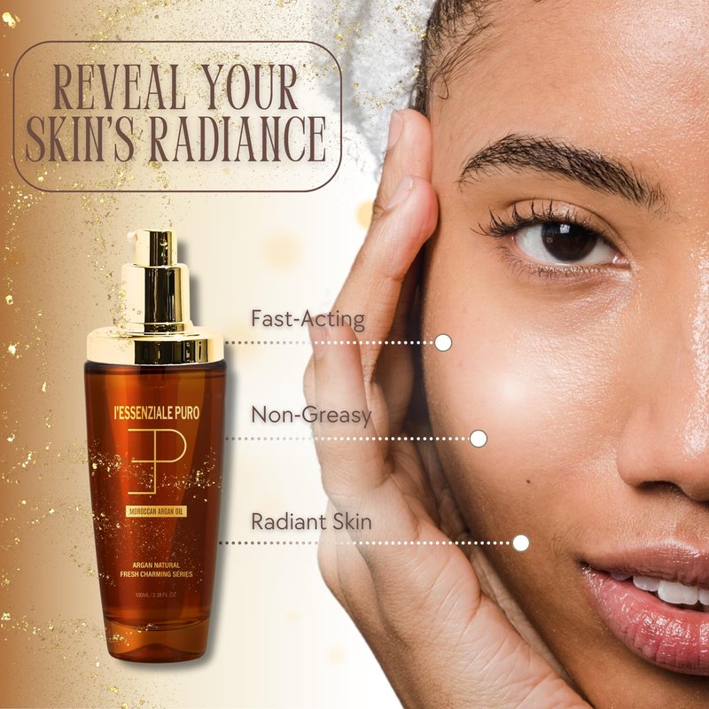 L'Essenziale Puro Moroccan Argan Oil for Hair & Skin – Luxury Multi-Purpose Elixir From Dubai – Nourishing Hair Oil – Moisturizing Face & Body Oil – Hair Serum For Frizzy, Damaged Hair – 100ml