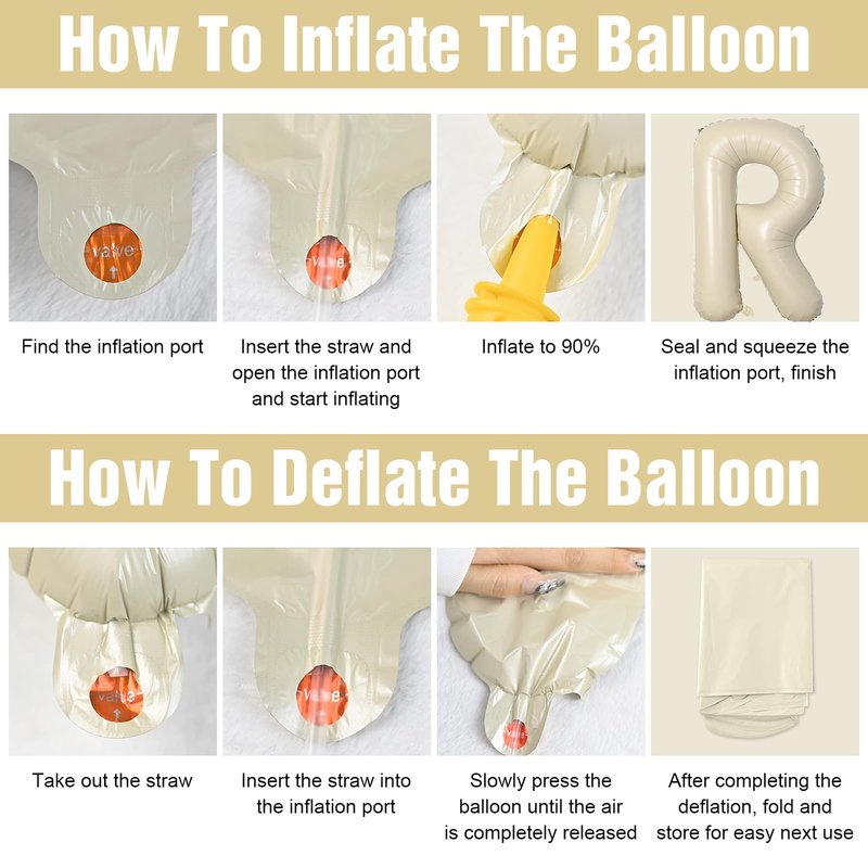 - 【EASY TO USE】The large cream letter balloons has a self-sealing valve on the inflation port, no need to tie a knot, it can be inflated with air or helium, after filling with helium, pinch down the inflation port of the digital balloon to seal it.