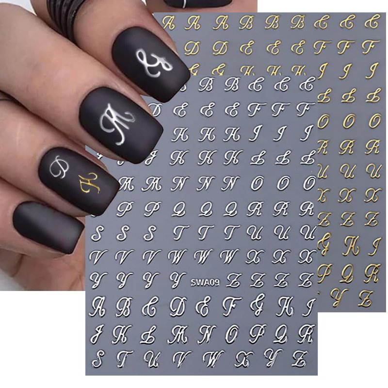 - Easy to Use: This gold letter nail sticker is self-adhesive and requires no glue, Just use tweezer to peel off nail stickers and stick nail decals on your nail. You can also use top coat to cover to make the beautiful stickers last longer.