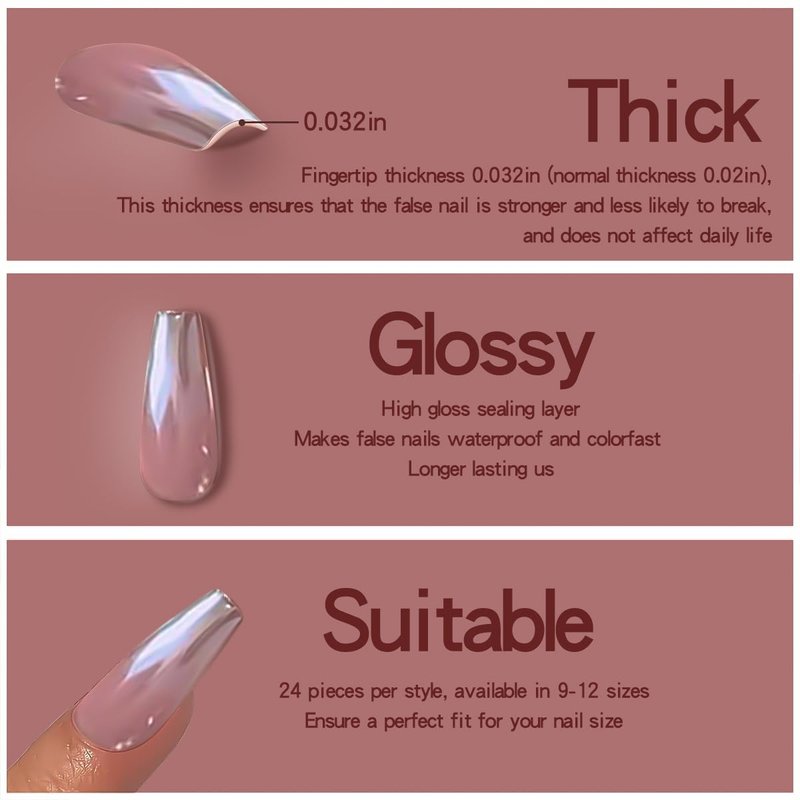 Leuhiove 24 Pcs Press On Nails Medium Chrome Glue On Nails with Nail Glue Reusable Stick On Nails Gel False Fake Nails Kit