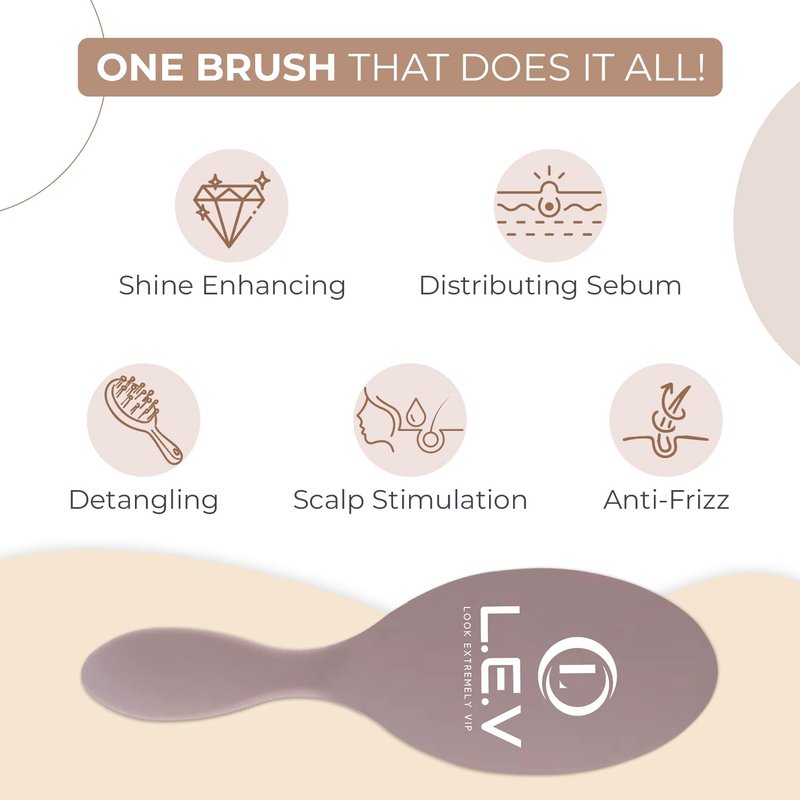 - BOAR BRISTLE BRUSH:- The Boar Bristle Brush is a key feature of the LEV Anti Frizz Hair Styling Brush, offering remarkable benefits for hair care. Crafted with high-quality boar bristles, its hair brush stands out for its ability. The boar brush also aids in reducing frizz by smoothing down the hair cuticles and taming flyaways resulting in a sleek and polished look. Our Hair Styling Brush offers a luxurious and rejuvenating hair care experience.