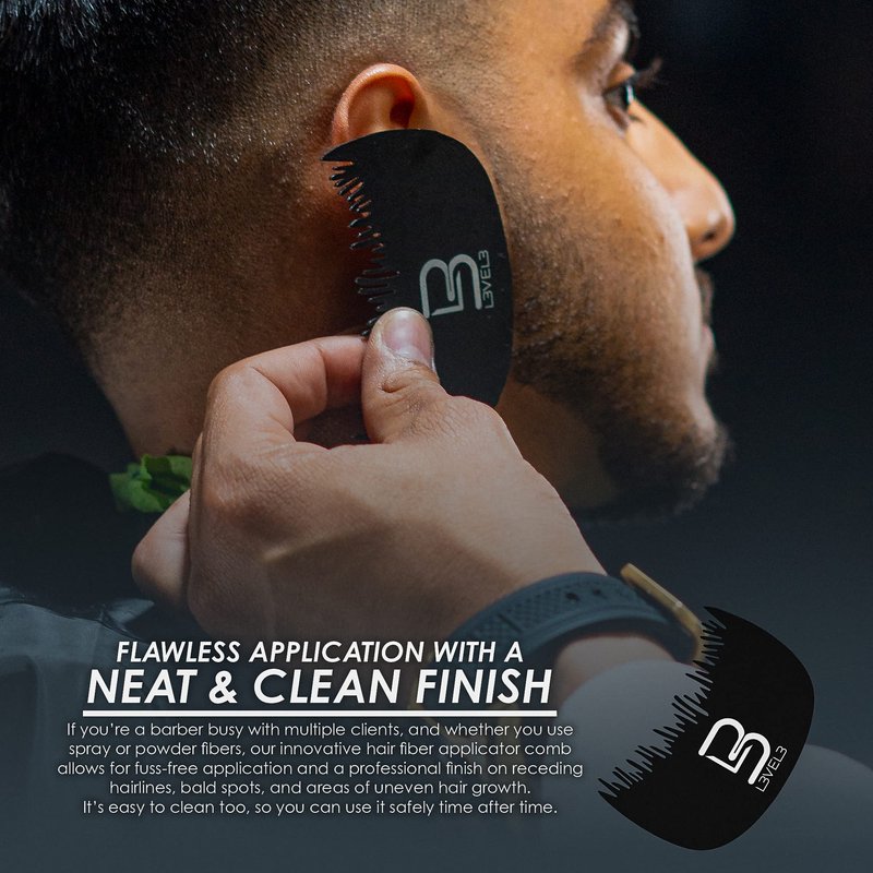 Level 3 Hairline Fiber Comb - Hair Fiber Line Up Optimizer - Applicator Combs for Hair Building Fibers Powder, Black