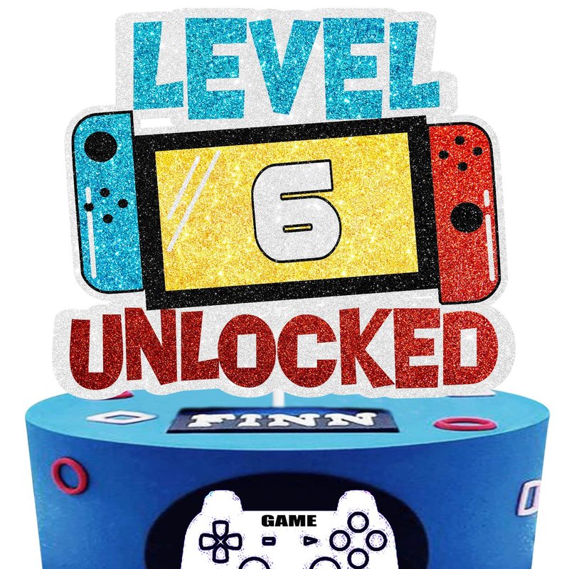 Level 6th Unlocked Cake Topper - Electronic Games Theme Boys Birthday Party Decorations Supplies - 6th Happy Birthday