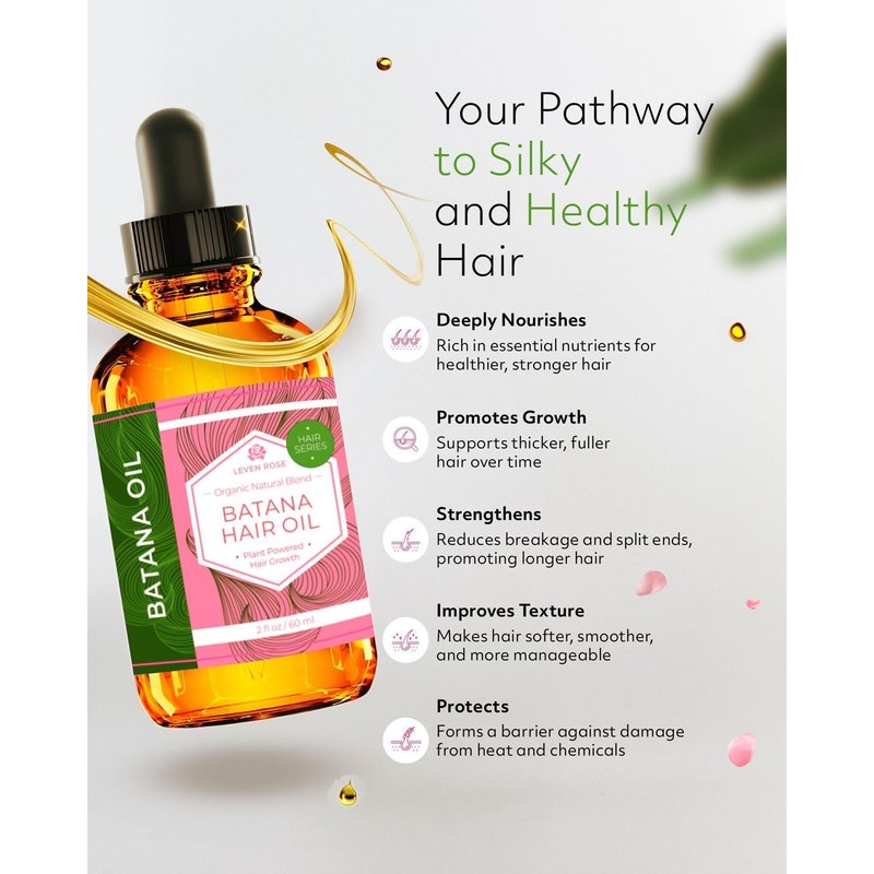 - Repair & Strengthen - Leven Rose’ organic Batana Oil, often referred to as Ojon Oil for hair, is crafted to effectively repair split ends while fortifying damaged strands. This exquisite hair serum is formulated for all hair types.