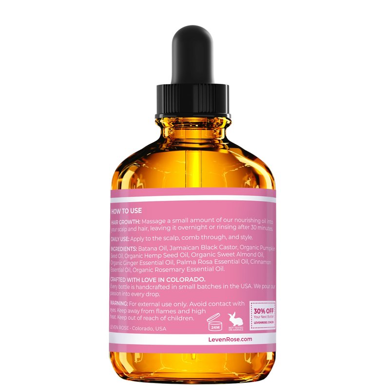 Unlock the secret to luscious locks with Leven Rose Batana Oil, your natural solution for vibrant, healthy hair. Our Batana Hair Oil is a potent blend of nourishing botanicals, including Jamaican Black Castor Oil, Organic Pumpkin Seed Oil, Hemp Seed Oil, and Sweet Almond Oil. Enriched with Organic Ginger, Palma Rosa, Cinnamon, and Rosemary essential oils, this luxurious formula supports hair growth, strengthens strands, and promotes scalp health. Experience the transformative power of this organic hair oil for hair growth as it moisturizes and revitalizes your hair, leaving it silky smooth with a natural shine. Our commitment to sustainability ensures that every bottle of Leven Rose Batana Oil is ethically sourced, supporting fair trade practices and the preservation of indigenous traditions. Elevate your hair care routine with Leven Rose Batana Oil for hair growth and discover the beauty secrets of ancient civilizations for modern, radiant hair. Key Features: Promotes hair growth, strengthens strands, and improves scalp health Moisturizes and revitalizes hair for a silky smooth finish Enriched with Jamaican Black Castor Oil, Organic Pumpkin Seed Oil, Hemp Seed Oil, and Sweet Almond Oil Infused with Organic Ginger, Palma Rosa, Cinnamon, and Rosemary essential oils Organic Batana Oil pure sourced from Honduras Ethically and sustainably harvested with the highest standards Supports fair trade practices and the preservation of indigenous traditions