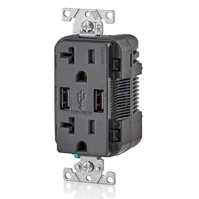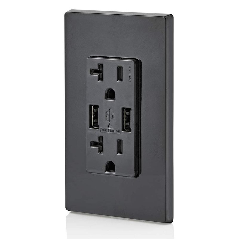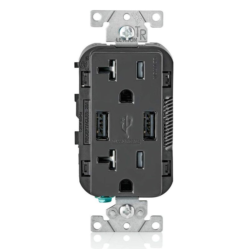 Leviton T5832-E Type-A USB In-Wall Charger with 20A Tamper-Resistant Outlet, USB Charger for Smartphones, Black
