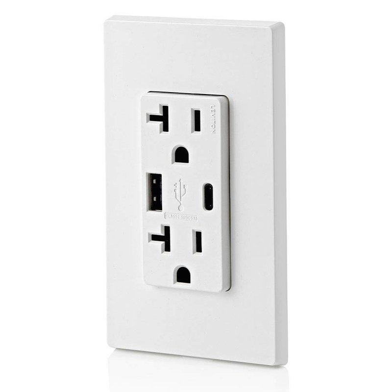 - SMART - Built-in smart chip recognizes the individual device’s charging requirements to optimize the charge (Does not provide Power Delivery. See Leviton T5835 and T5836)