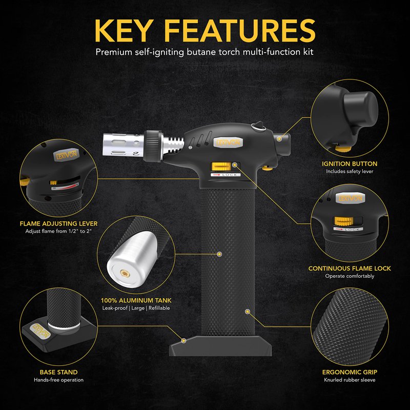 LEXIVON Butane Torch Multi-Function Kit | Premium Self-Igniting Soldering Station with Adjustable Flame | Pro Grade 125-Watt Equivalent (LX-771)