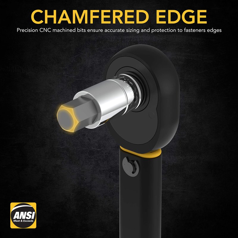 - COMFORTABLE - Insert smoothly with precision chamfered bit ends. Sizes are stamped on sockets and on heavy duty storage case for faster recognition.