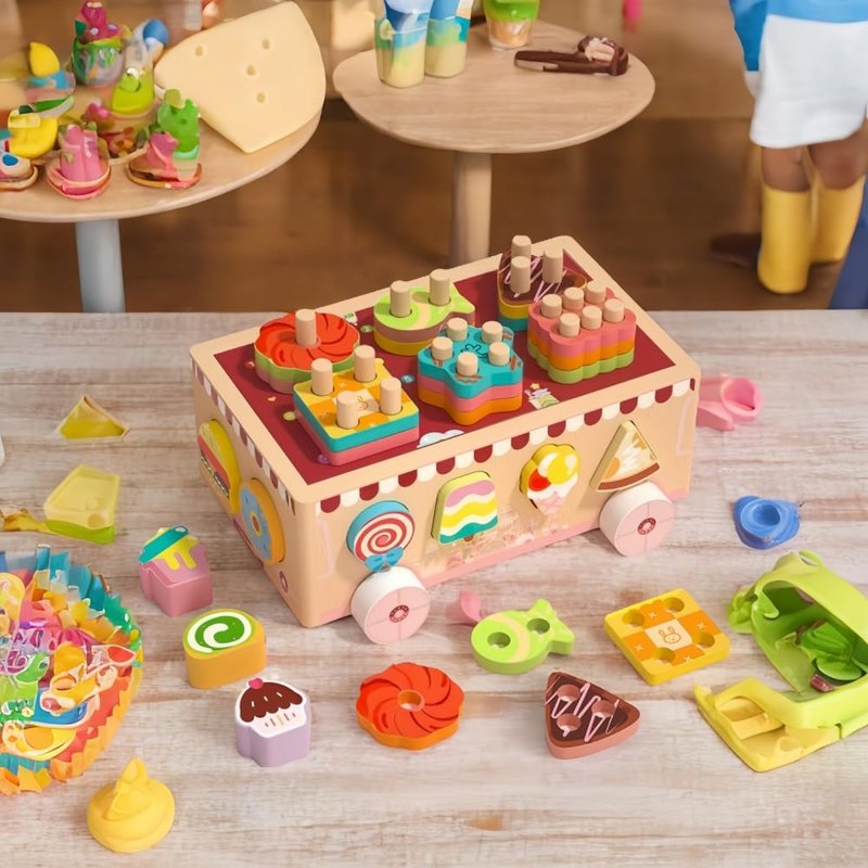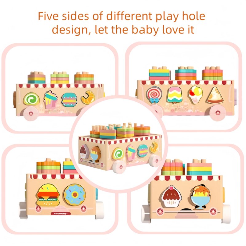 This ice cream themed wooden toy car is like a sweet little adventurer, leading kids into the colorful ice cream kingdom. It is not only a source of creativity for children, but also a sweet companion in parent-child time, making every childhood moment full of laughter and sweet memories. It has become one of the favorite toys for children aged 3 or above with its unique ice cream themed design, rich color combinations, and educational and entertaining functions.