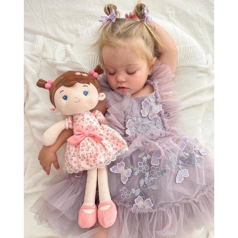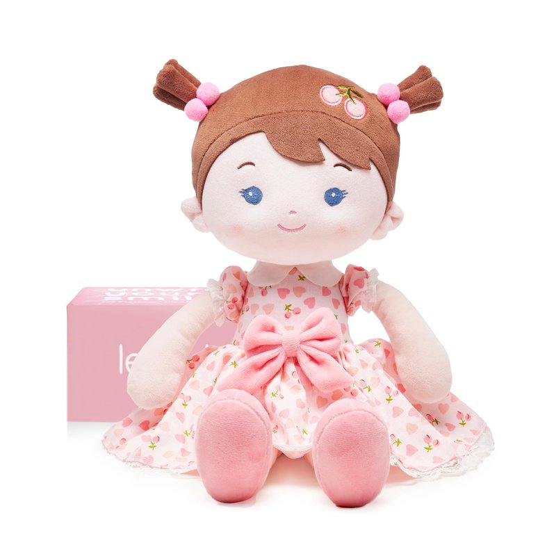 LeyaDoll Soft Baby Doll Toys (16''), My First Baby Rag Doll for 1 Year-Old Girl Birthday Gift,Christmas Plush Toys Gift for Toddler Kids Infants-Cherry