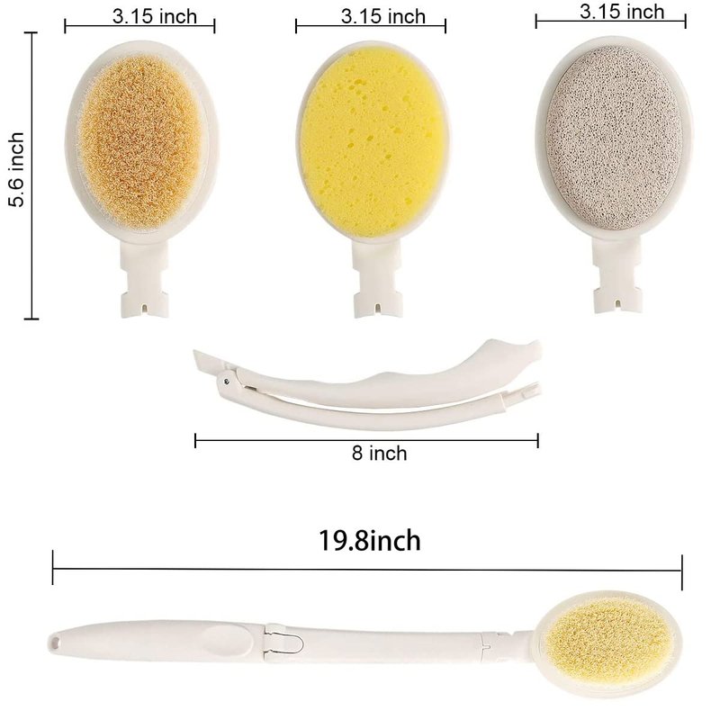 - LFJ patent bath brush with 19" solid long handle and 3 interchangeable provide a variety of combinations to meet your daily bath demand