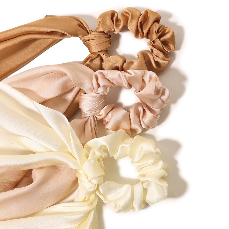 You will receive a pack of 3 pieces hair scarf scrunchies
