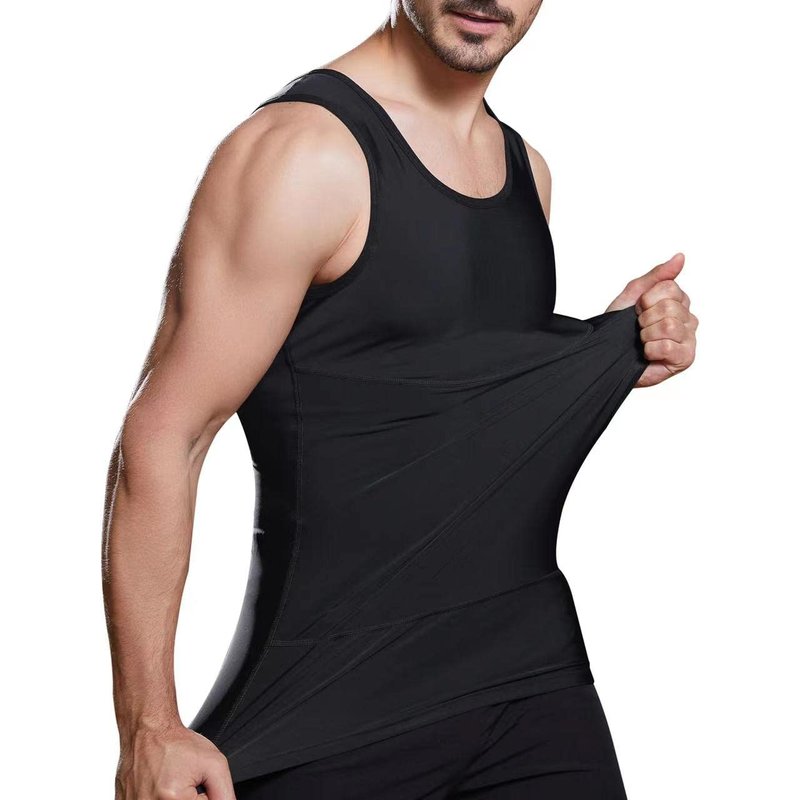 - 【CHANGE IN SECONDS】 This mens gynecomastia compression tank top is designed to reshape the male chest, waist and tummy, reduce the appearance of gynecomastia, hide man boobs and beer belly, straighten the back, provides an immediate slimming look. The slimming design of this shirt allows you to wear it under all types of clothing, such as t-shirts, polos, dress shirts, suits.