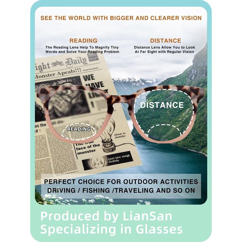 - 【BIFOCAL READING GLASSES 】►Premium bifocal lens with 7-layered coating protection,provide better clarity,scratch resistant, & the multi-layer reflection nano coating can reduces glare,perfect for outdoor reading and distance viewing under the sun.