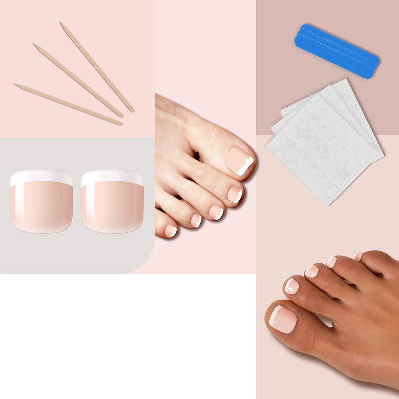 - 【French Tip Press on Toenails Kit】280pcs nude press on toe nails, 72pcs adhesive nail tapes, 3pcs nail file, 3pcs cuticle stick. Full cover design white french toe nails, fit and good cover the shape of your own toe nails that make your toenail art looks more natural. All-in-One toe nails pedicure set are perfect for home toe nails DIY.