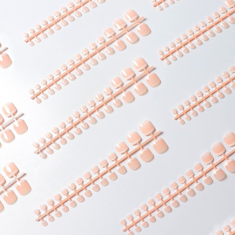 - 【High Quality Toe Nails Press on】Full cover fake toe nails are made of quality ABS material acrylic. Chip-free, bubble-free, and super durable. Silky smooth Rim, Stick on nails are lightweight, comfortable, breathable and resilient. Seamless fit and natural look, just like grows on you. Fit for 1 - 3 weeks long of daily use. Natural and comfortable. No extra Need to polish and painting.