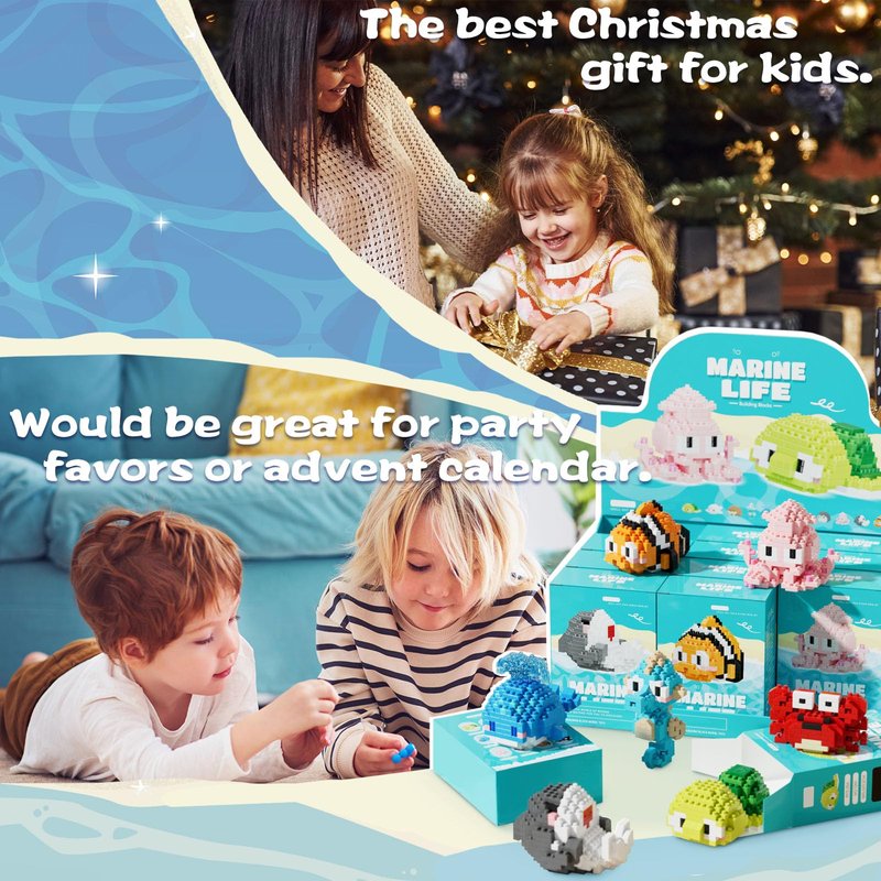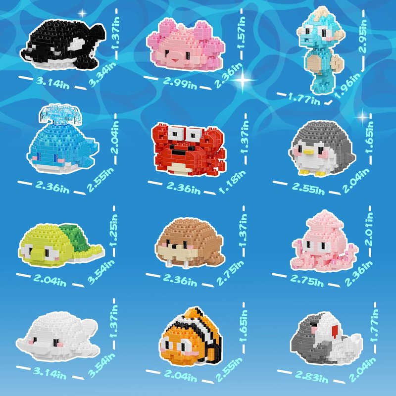 - Oceanic Animal Wonderland – The 12-in-1 Creative Building Set: This is not merely a toy box; it's a magical gateway to the wondrous underwater world, featuring 12 intricately designed animal mini blocks: from the graceful seahorse, fierce shark, majestic whale, to the lively clownfish, cunning crab, and enigmatic octopus... Each piece embodies the splendor of nature's inspiration. As children construct each one, they embark on a journey of discovery and learning, unleashing their imagination and creativity amidst the thrill of building