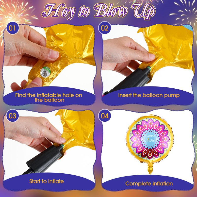 - Reliable and Lasting: our happy Diwali balloons are made of quality aluminum foil with clear printing, safe and reliable, thick and sturdy, not easy to fade, burst or break, easy to inflate with air or helium, and can be applied for a long time with confidence; Note: please be careful not to over inflate the balloon to avoid exploding, better to inflate with an air pump