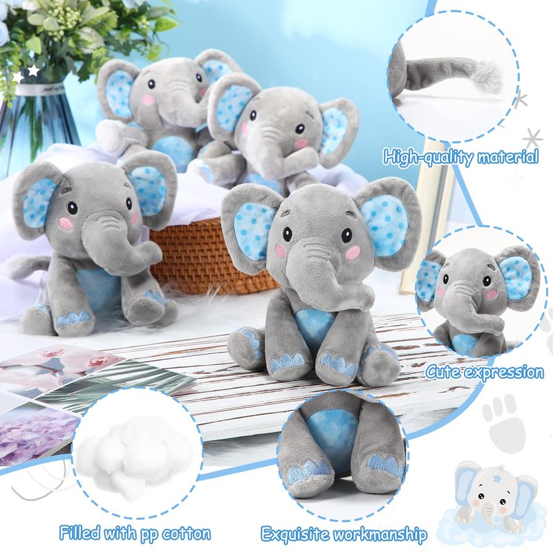 - Abundance in Quantity: the package includes 4 elephant stuffed animals for baby shower, providing ample quantities for your child's enjoyment; They can share them with other people, use them for imaginative play, or even display them as cute decorations in their room; Versatile and abundant, these elephants are sure to bring joy to your little child's playtime