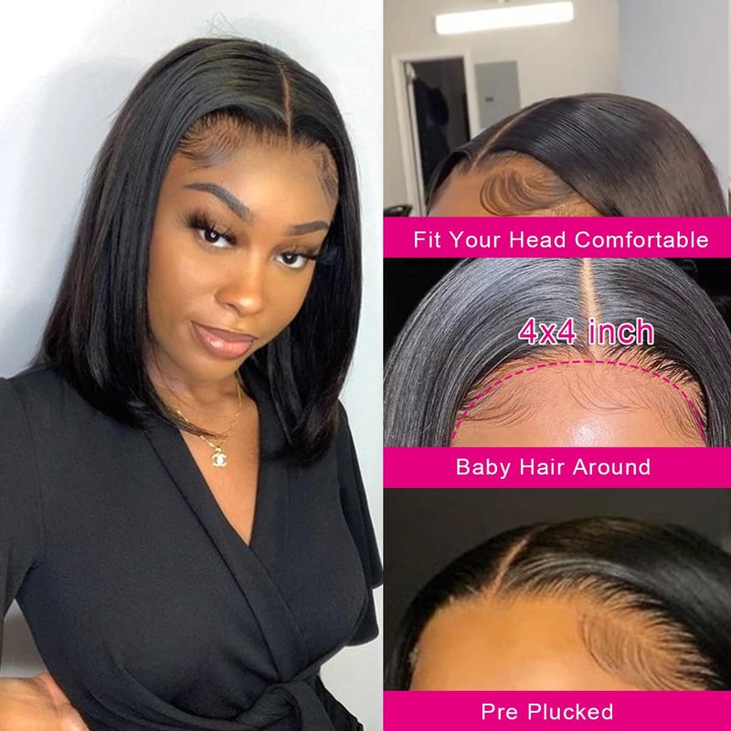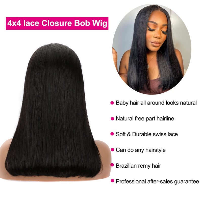 - 【Wigs Lace Details】: 4x4 Straight Bob Lace Closure Wig Human Hair, Breathable&Durable High Quality Light Brown Swiss Lace Material Makes it So Invisible, Soft, Comfortable.