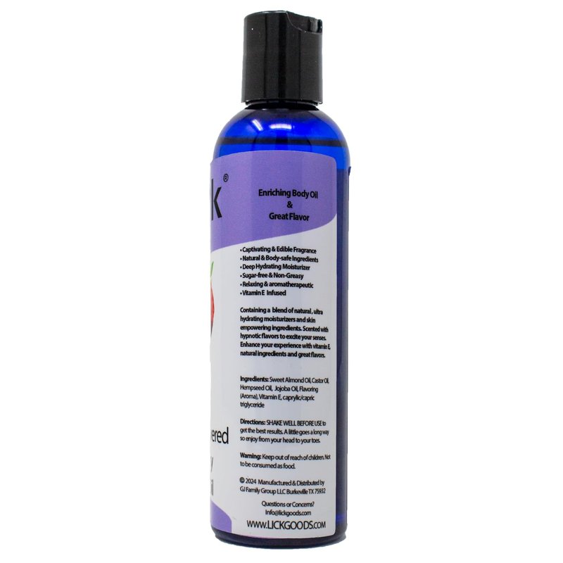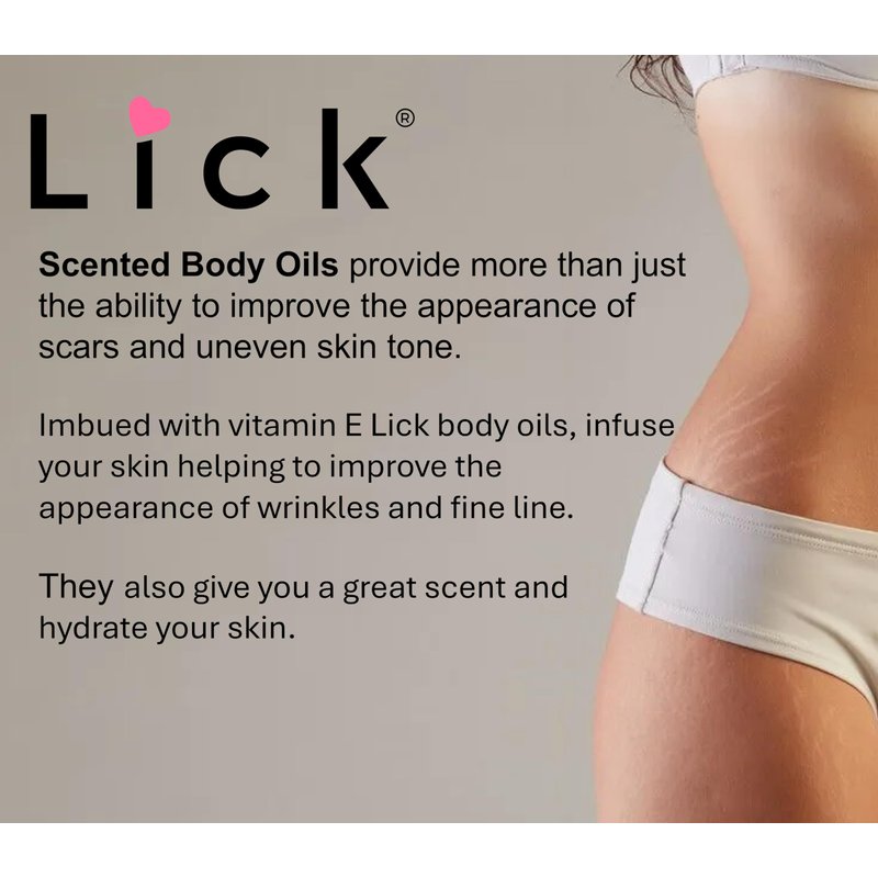 Welcome to the world of Lick, where we cater to all your skincare needs with the highest quality products. Our Chocolate Covered Strawberry Scented Body Oil is a sheer delight. Not just your ordinary body oil, this luxurious product is a unique blend of pineapple body oil and fragrance body oil, offering a tantalizing scent that will make you smell like a tropical paradise. The oil is infused with Vitamin E, a powerful antioxidant that protects your skin from damage, keeping it healthy and vibrant. It offers intense moisturizing and hydration, making it perfect for those with dry skin. This body oil gel is a perfect addition to your skincare routine, especially after a relaxing shower. The aroma of chocolate covered strawberries lingers on your skin, providing soothing aromatherapy that relaxes your mind and body. This body oil after shower scented is gentle and safe for all skin types. It's not just a body oil for women, it's a sensory experience that takes you to a world of peace and tranquility. Lick's moisturizing body oil goes beyond just hydrating your skin; it leaves you feeling pampered and smelling great all day. The rich chocolate and sweet strawberry fragrance body oil will make you irresistible, a scent that's loved by women across the globe. Our body oil is organic and natural, free from any harmful chemicals. It's perfect for those who prefer fragrance free body oil. This shower oil for women is not just a treat for your skin, but also for your senses. Whether you're looking for body oils for women that smell good or body oils for women with dry skin, Lick has got you covered. We believe in providing high quality body oils that not only nourish your skin but also uplift your mood. This is not just a product, but an experience that every woman deserves. So why wait? Step into the world of Lick and experience the magic of our Chocolate Covered Strawberry Scented Body Oil. It's more than just a body oil, it's a journey to a world of relaxation and indulgence!