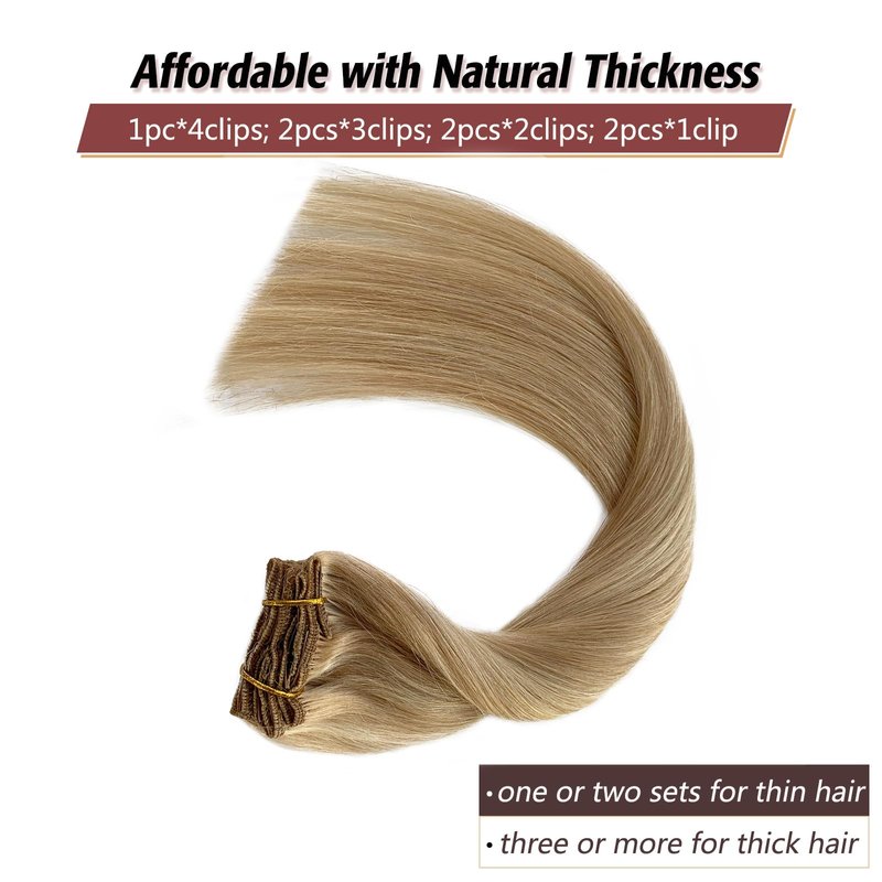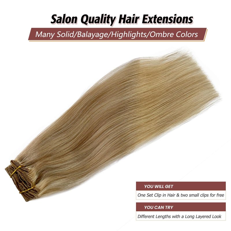 - Clip in Hair Extensions Premium Real Human Hair: clip in hair extensions are real human hair salon quality hair extensions, extremely soft to the touch, silky and smooth, blend in perfectly and seamlessly with your own hair; blonde highlight clip in extensions, the actual color may have slight difference due to monitors or light; if you had problems with color matching, please feel free to get in touch with us