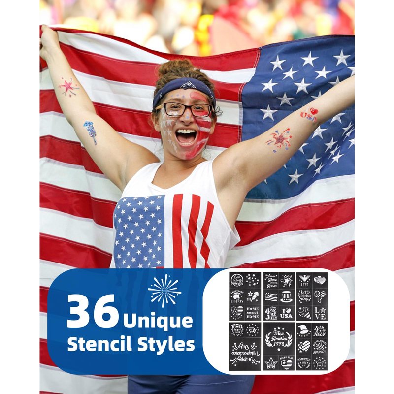 - USA Accessories: Lictin face paint elevate your makeup with 30 stencil stickers, 3-color mixed glitter, and glue included, adding a stylish touch to your look on any occasion. Color your face with the hues of liberty!