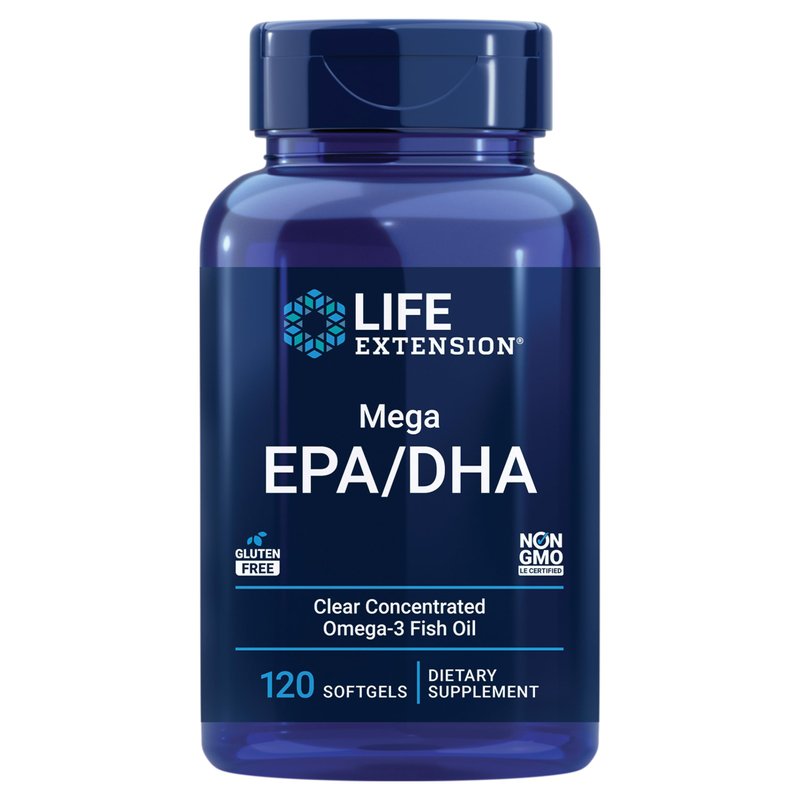 Life Extension Mega EPA/DHA, Omega-3 Fatty acids, Heart & Brain Health, Inflammation Health Support, Non-GMO, Gluten-Free, 120 softgels