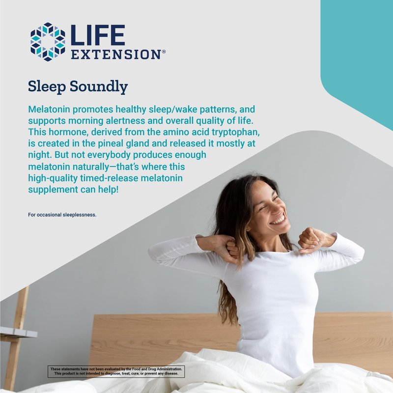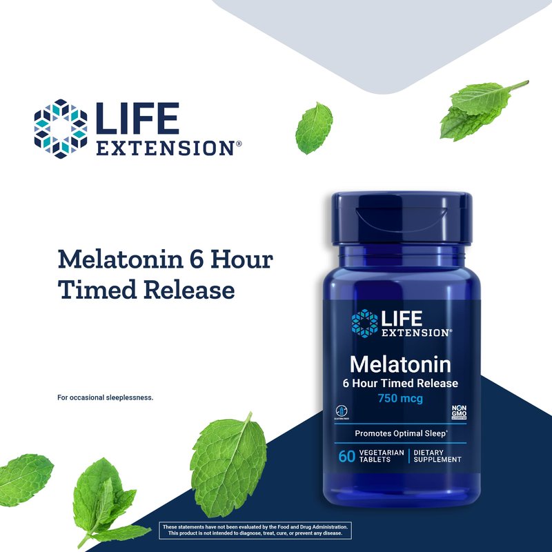 Life Extension Melatonin 750 mcg 6 Hour Timed Release - Sleep & Cellular Health Support in a Gradual-Release Formula – Melatonin Supplement - Gluten-Free, Non-GMO - 60 Vegetarian Tablets