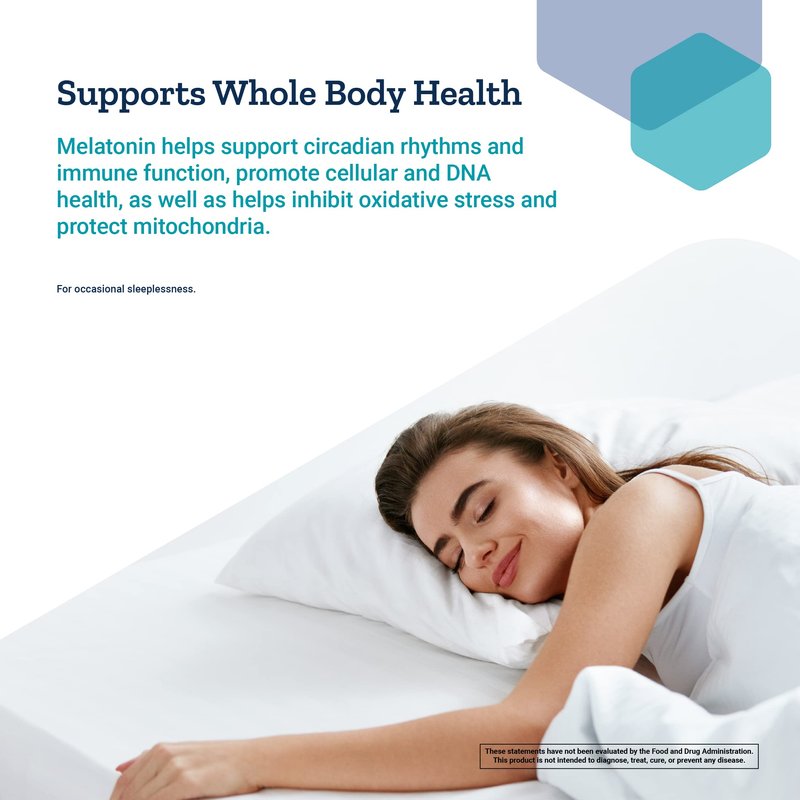 - SUPPORTS WHOLE BODY HEALTH – Melatonin helps support circadian rhythms and immune function, promotes cellular and DNA health, as well as helps inhibit oxidative stress and protect mitochondria.