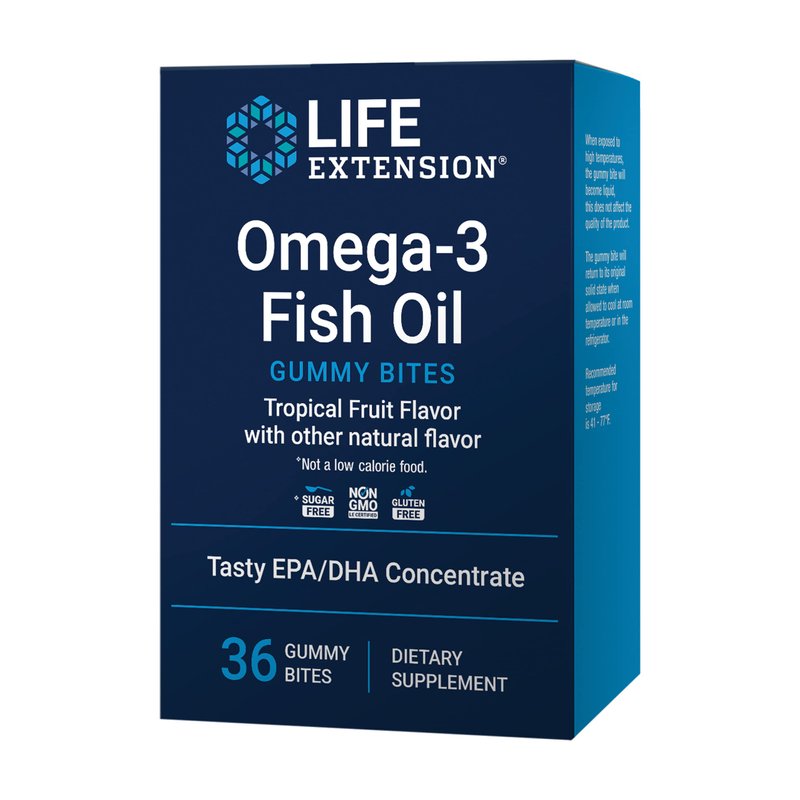 Life Extension Omega-3 Fish Oil Gummy Bites, EPA DHA Fatty acids, High-dose EPA DHA Support in a Delicious chewable Form, Non-GMO, Gluten Free, 36 Gummy Bites
