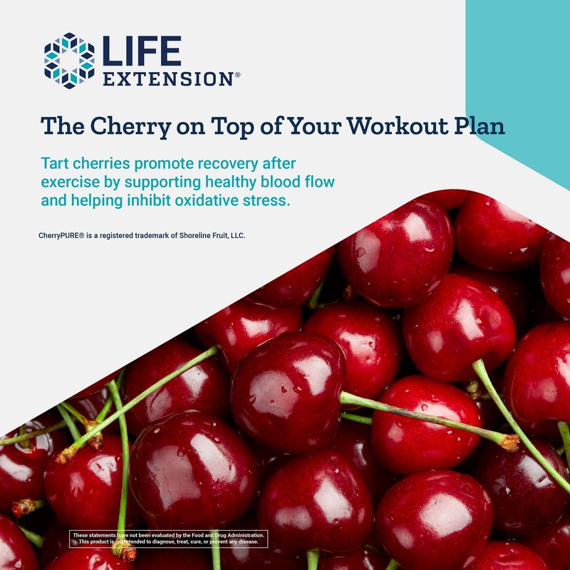 Life Extension Tart Cherry with Cherry Pure – Tart Cherries Extract Powder Capsule Supplement for Rapid Muscle Recovery Support and Uric Acid Management – Non-GMO, Gluten-Free – 60 Capsules