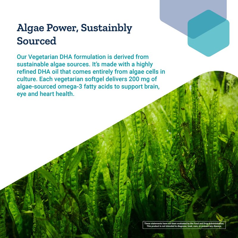 - ALGAE POWER, SUSTAINABLY SOURCED – Delivers 200mg of algae-sourced omega-3 essential fatty acids. Our formulation is derived from sustainable algae sources, made with a highly refined DHA oil that comes entirely from algae cells in culture.
