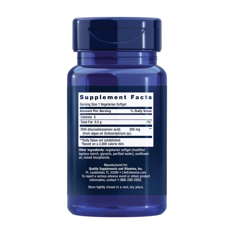 Life Extension Vegetarian DHA - Algae Plant Based Omega3 Fatty Acid DHA Supplements for Eye, Brain & Heart Health Support for Adult and Kids - Gluten-Free, Vegetarian, Non-GMO - 30 Softgels