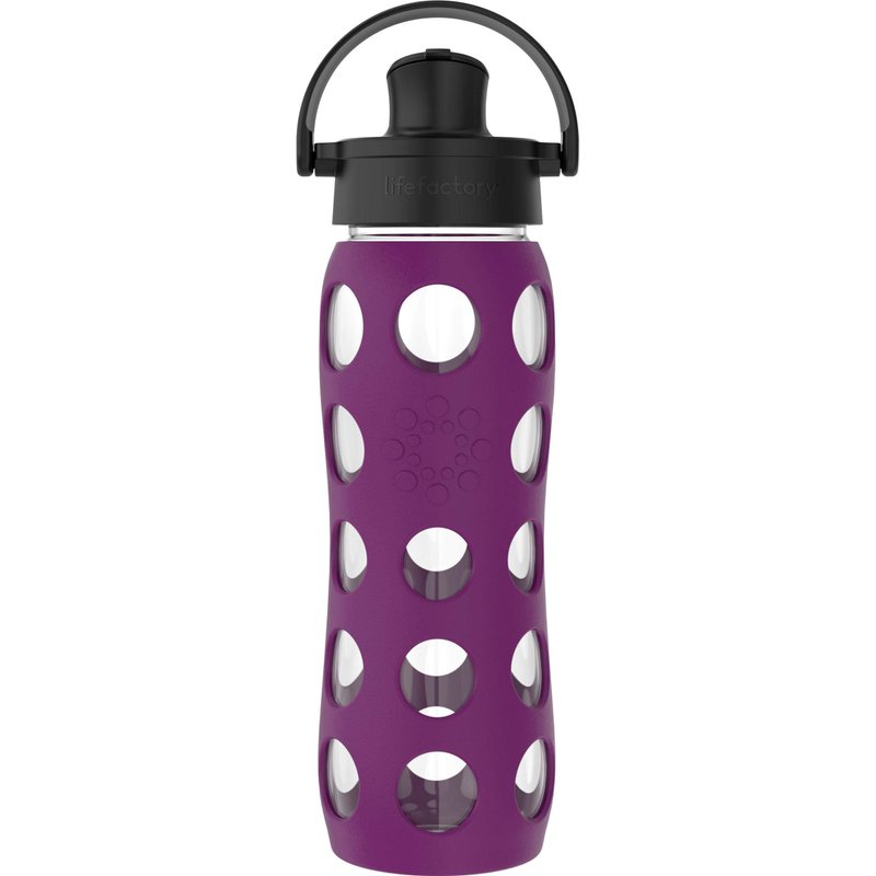 Lifefactory 22-Ounce Glass Water Bottle with Active Flip Cap and Protective Silicone Sleeve, Plum