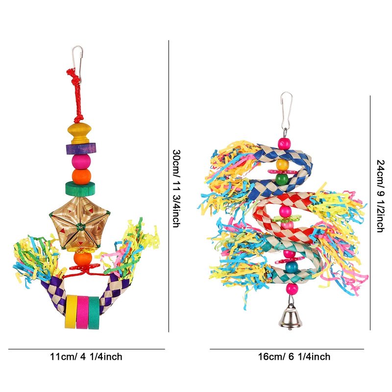 - VARIED DESIGN: The set Includes 5pcs different types of colorful bird Shredding toys, birds can play, chew, and explore freely, ideal size for small and medium birds, such as parakeets, conures, cockatiels, lovebirds, etc