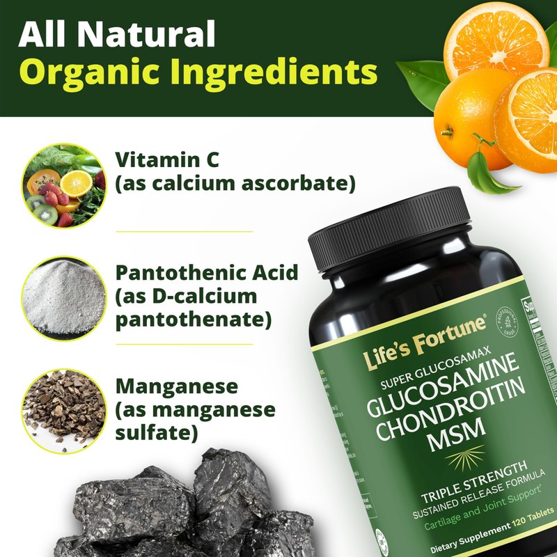 Life's Fortune Triple Strength Glucosamax - 1000mg Premium Glucosamine, Chondroitin and MSM Supplement with Vitamin C for Joint Comfort & Mobility, 120 Tab