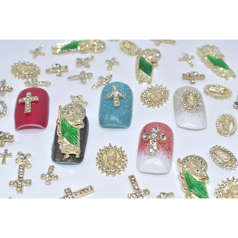 - You will get 8 Pcs 3D Nail Charms with san judas tadeo Virgin Mary shape and 16 Pcs cross nail charms for your daily needs.exquisite and noble, make your nail to be charming.