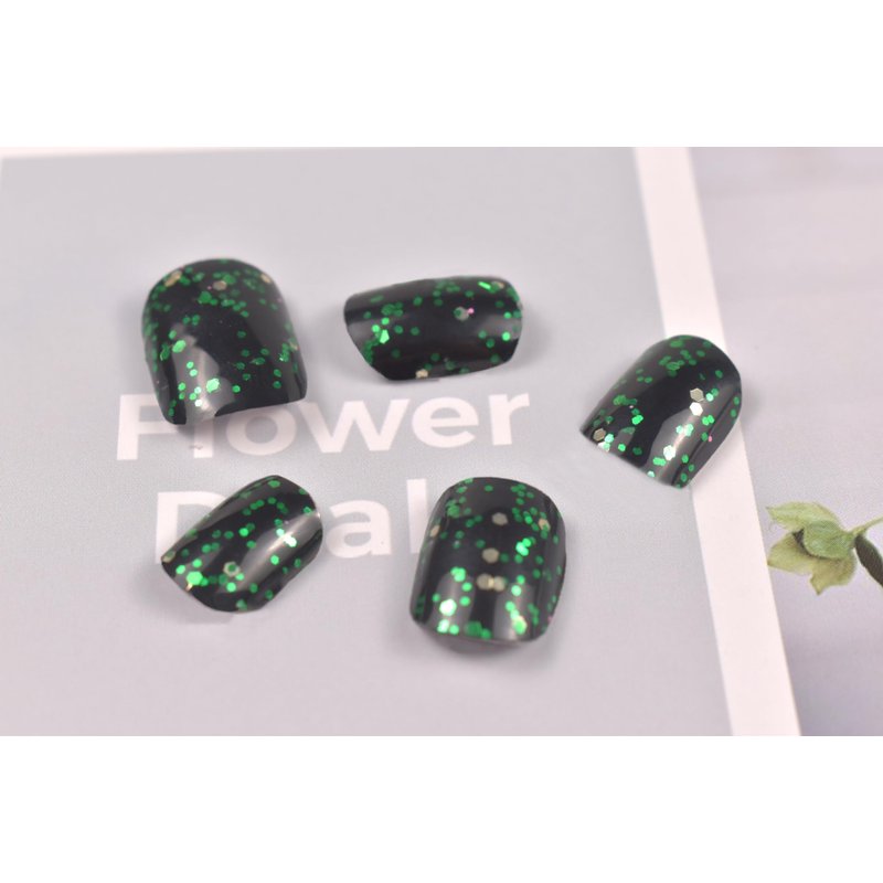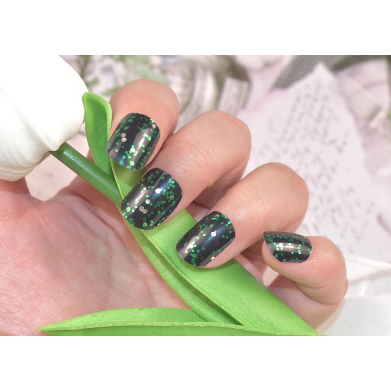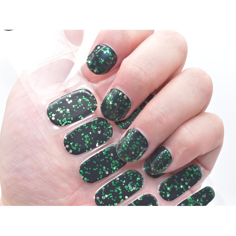 LIFOOST Semi Cured Gel Nail Stickers Black Green Sparkly Sequins Adhesive Nail Polish Strips for Women Manicure