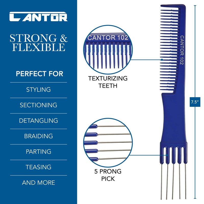 Lift Teasing Comb and Hair Pick – 1 Pack, Five Stainless Still Lifts - Chemical and Heat Resistant Detangler Styling Comb – Anti Static Comb For All Hair Types – By Cantor