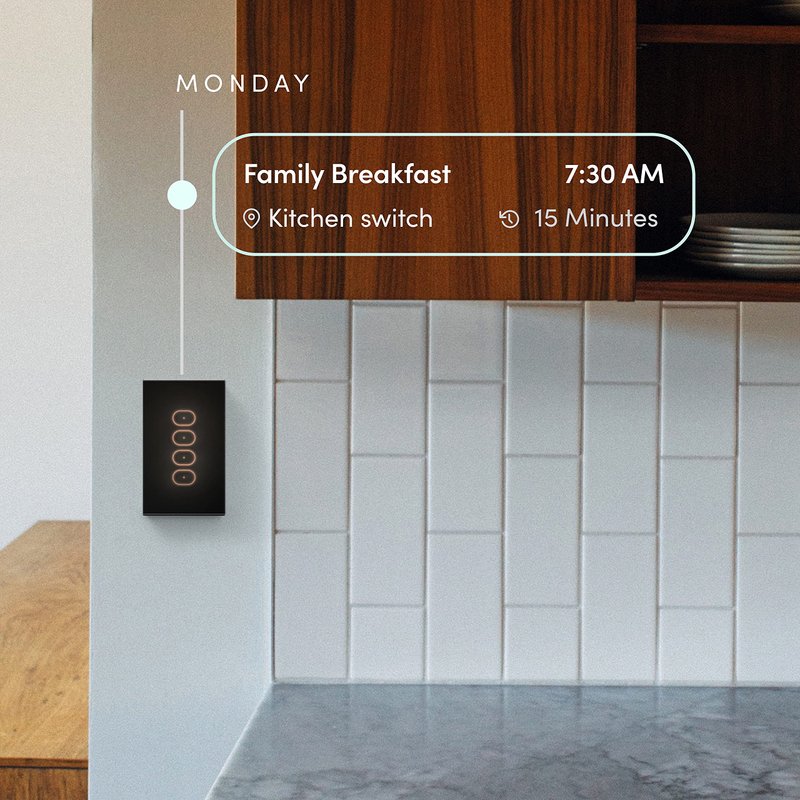 - Wi-Fi-connected, wired-in wall switch that works with major voice partners.