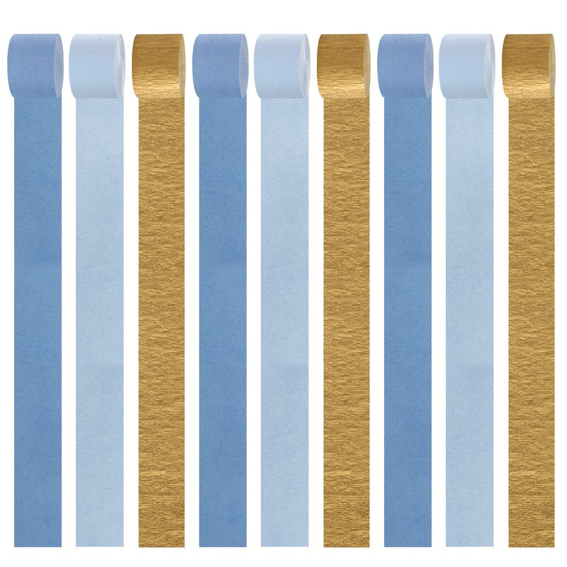 - 【Bright color】 Our crepe paper is available in 3 colors, 3 rolls per color: light blue,dusty blue,gold.There is plenty of each color to really get creative and have some fun.