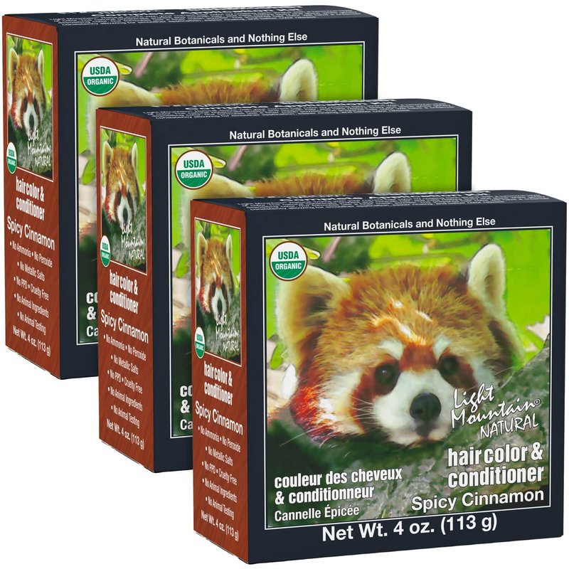 Light Mountain Henna Hair Color & Conditioner - Spicy Cinnamon Hair Dye for Men/Women, Organic Henna Leaf Powder and Botanicals, Chemical-Free Semi-Permanent Hair Color, 4 Oz (Pack of 3)