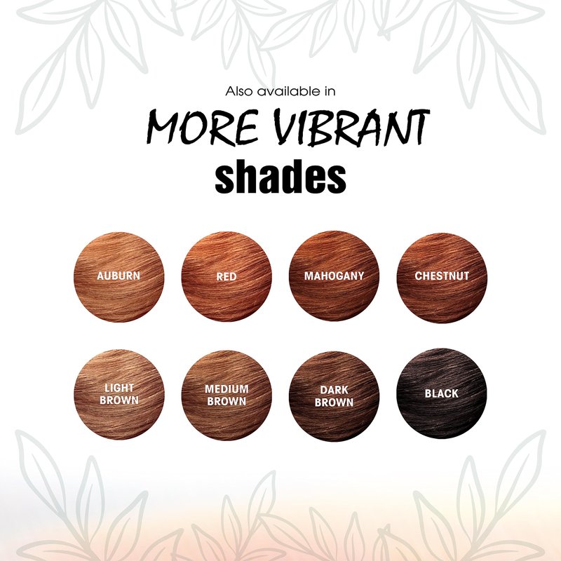 This hair coloring kit is available in a variety of shades, including Auburn, Black, Chestnut, Dark Brown, and Mahogany. Each shade is formulated with a unique blend of botanical ingredients to achieve the desired color.