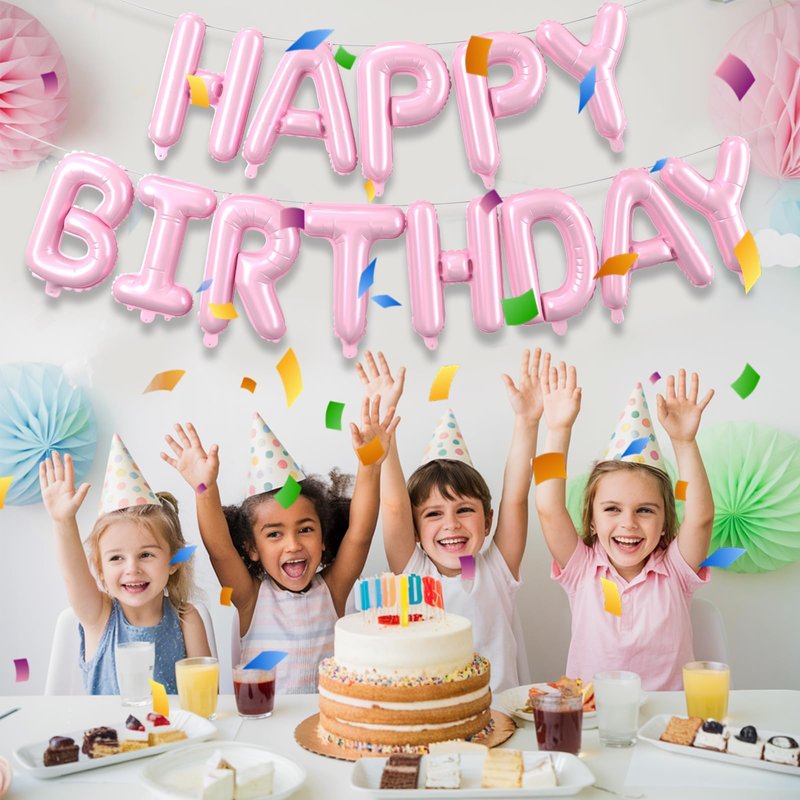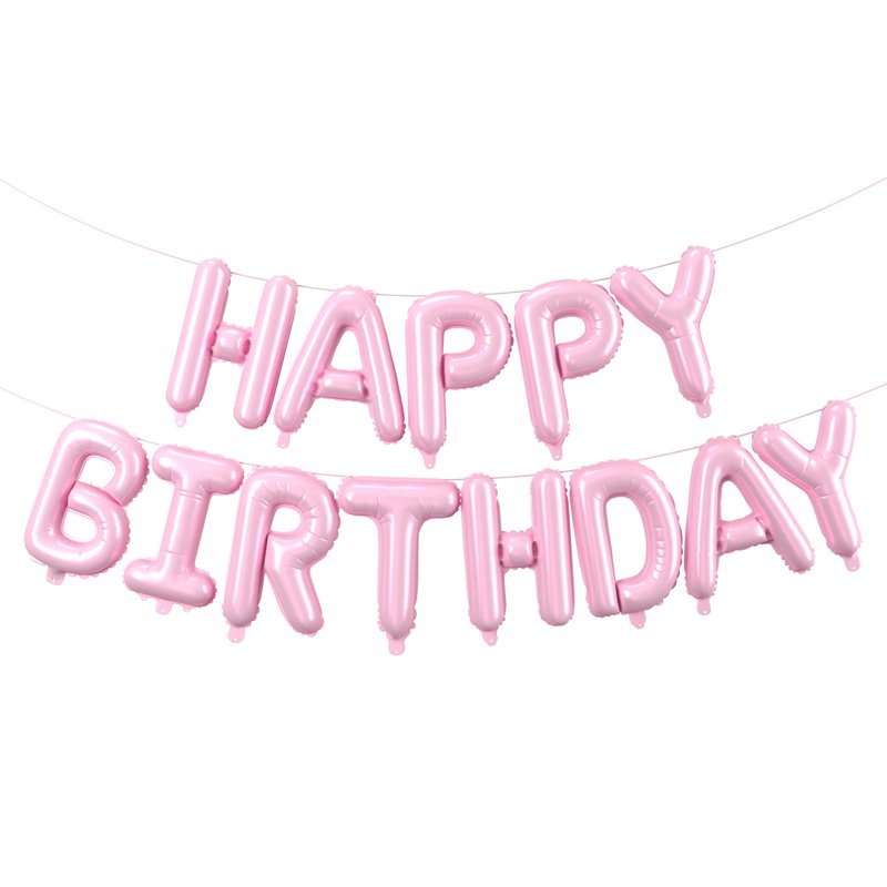 - Light Pink Happy Birthday Balloon Banner Set:16 inch light pink foil letter happy birthday balloons.Each package come with 13 pcs independent letter balloons which can be combined into "HAPPY BIRTHDAY",1 pcs straw and 1 white ribbons 10 meters long.Create a memorable atmosphere with this versatile and stylish birthday balloon kit.