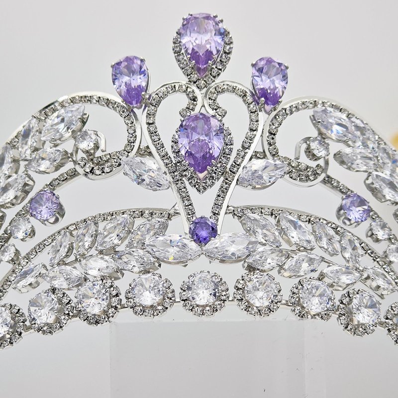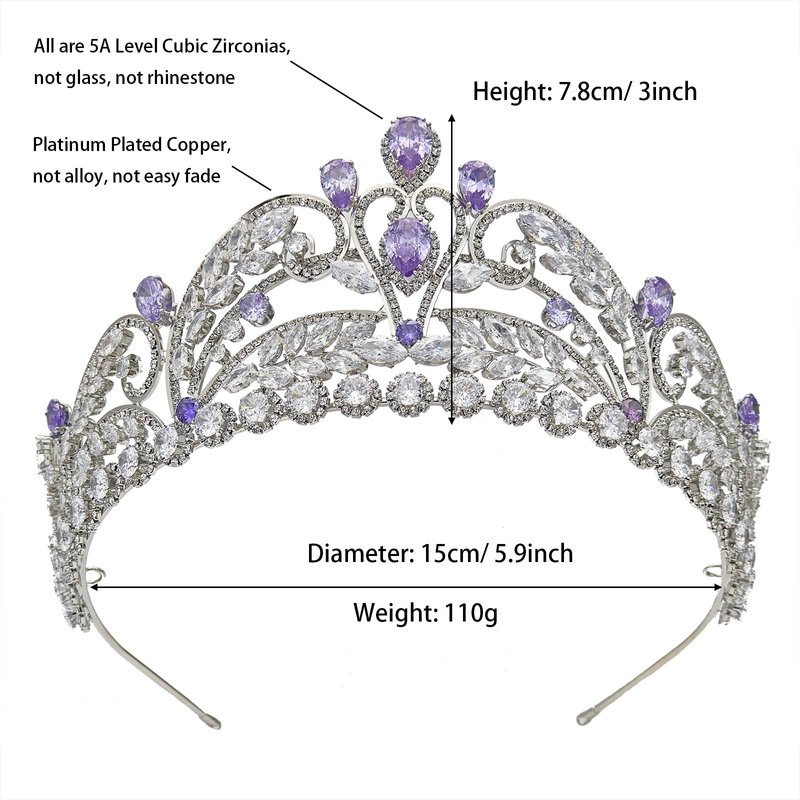 - Material: silver and purple tiara is made of Cubic Zirconias with Micro Inlays and copper plated with real platinum. It's anti-rust, and anti-alleryic, durable for safe wearing in many years.