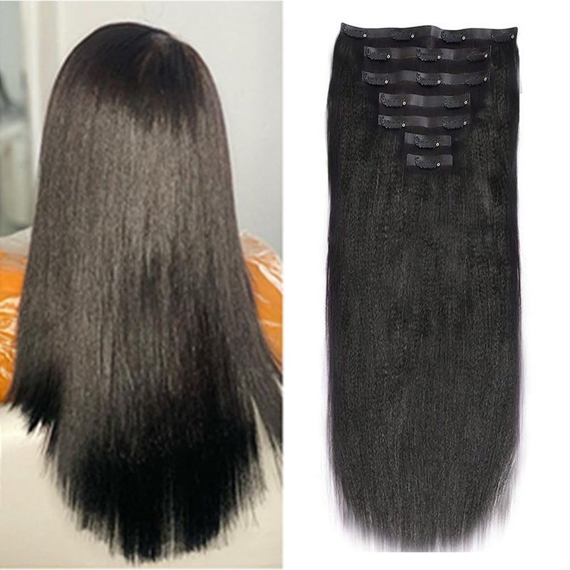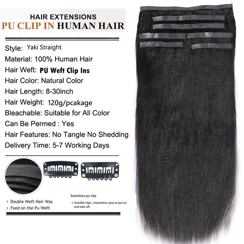 Light Yaki Straight Human Hair Extensions PU Clip in Hair Extensions Natural Black 14 Inch 120g Kinky Straight Natural Remy Seamless Clip ins Human Hair Extensions