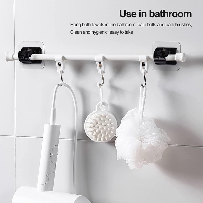 - Quality Materials: You Will Get 8 Pieces Of Non-drilled Self-adhesive Curtain Hooks . Made of quality plastic and stainless steel, these curtain rod hooks are stable, durable, and have long service cycles.2PCS curtain rod bracket With a load capacity of 3kg/6pounds, adhesive curtain rod holders can ensure the safety of use.If your curtain rod and curtains are over 6LB, add a few more products as supports before hanging.